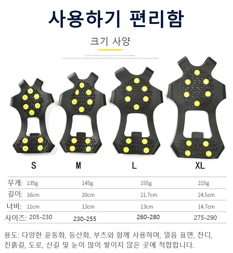 10핀 고탄력 실리콘 겨울 미끄럼 방지 아이젠 신발 커버